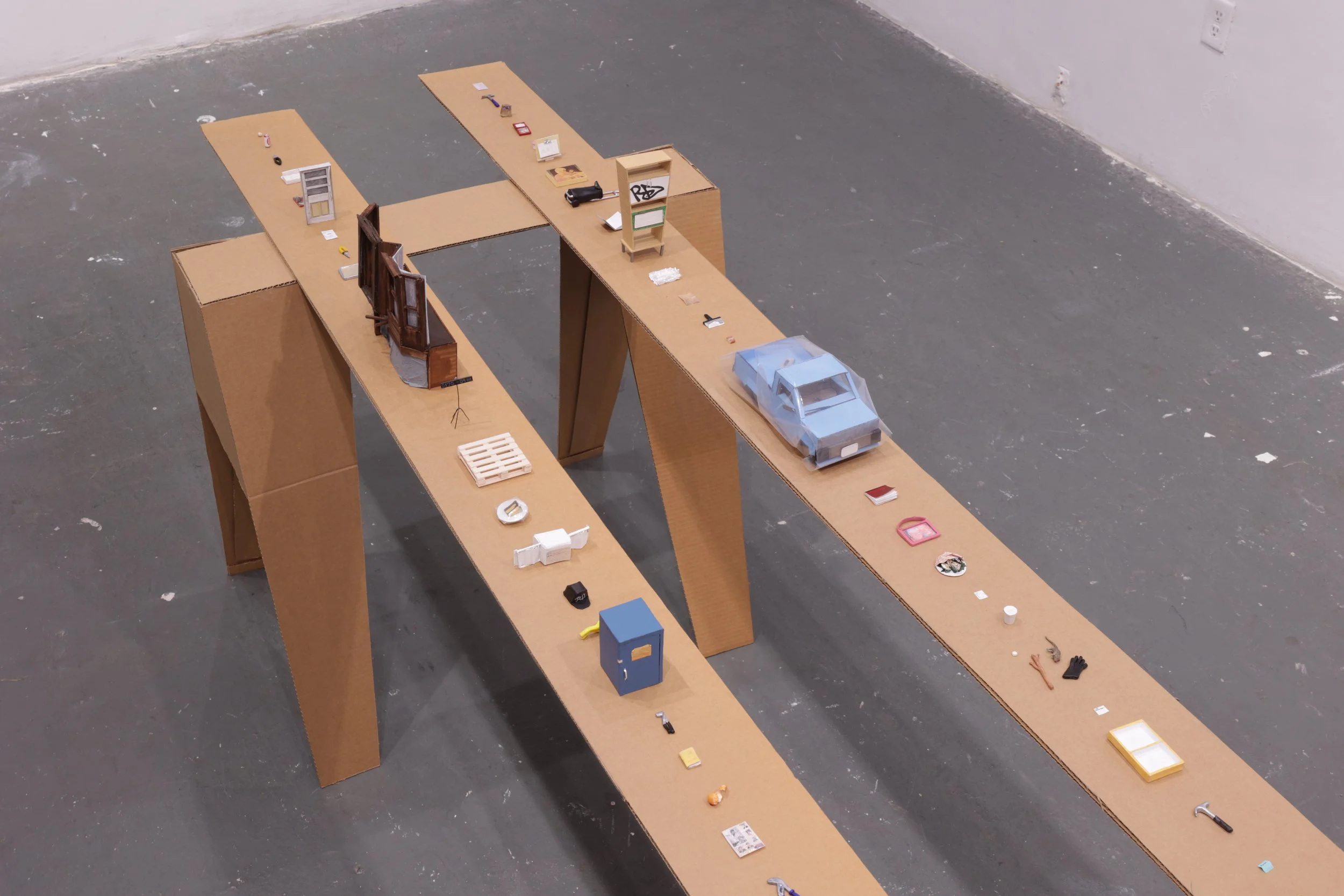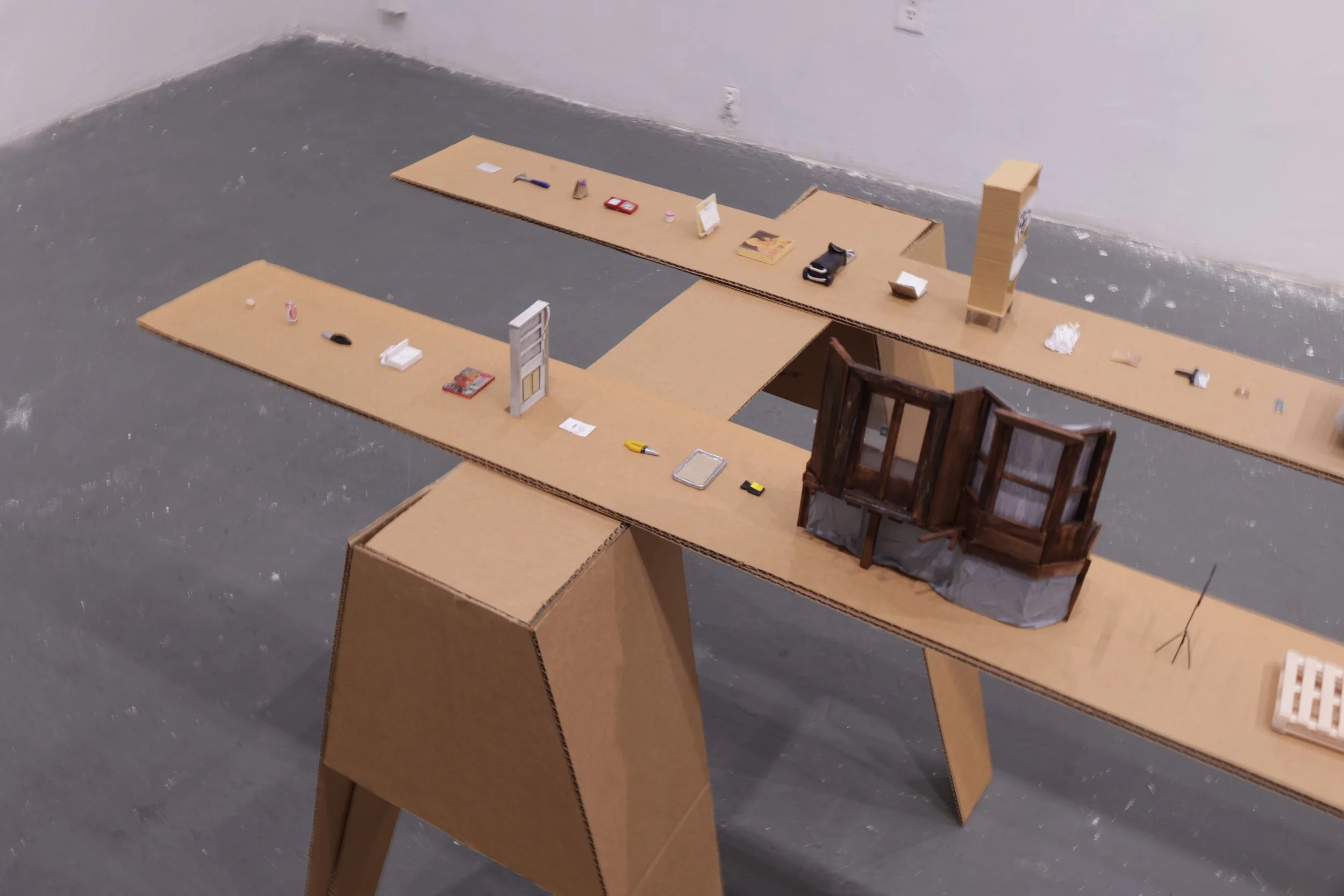 **Miniature objects: acrylic paint, balsa wood, cardboard, clay, colored pencil, glue, ink, paper, paper towels, permanent marker, plastic, printed image, tape, wire