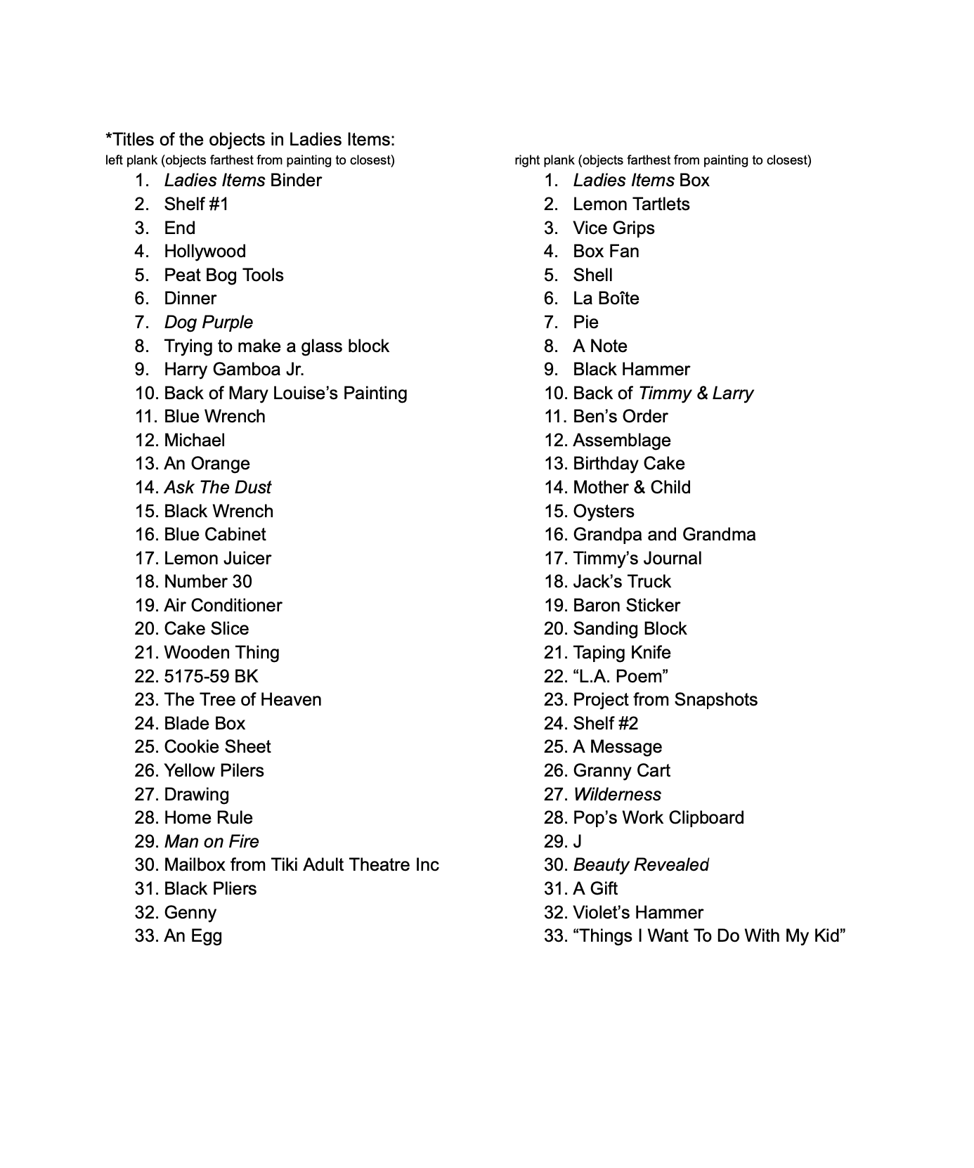 Shown in Final Show “Ladies Items” at California Institute of the Arts